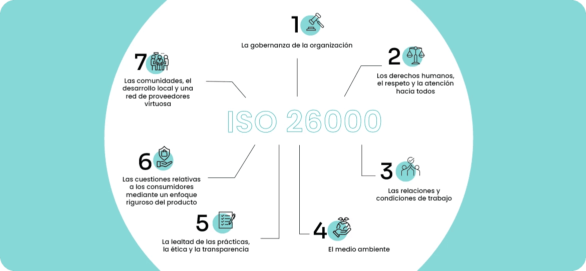 Em termos de estrutura, baseamo-nos na ISO 26000, pelo seu rigor, por sua abordagem holística, mas também por sua contribuição aos Objetivos de Desenvolvimento Sustentável (ODS) da Organização das Nações Unidas.